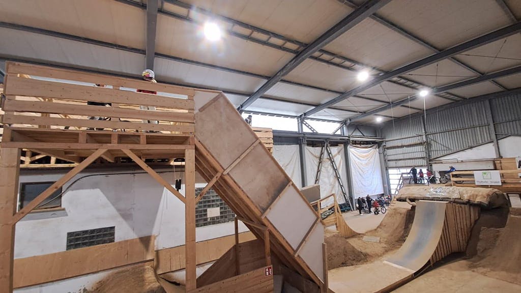 Wer kann teilnehmen? Ja, es ist eine Indoor-Anlage, primär für Dirtjump, Slopestyle und BMX, aber auch Downhiller, Freerider oder Enduro-Fahrer können Tricks lernen oder auf den Tables Ihre Sprungtechnik verbessern! Allerdings fahren sich die steilen Rampen, mit Dirt oder BMX, wesentlich besser. Entscheidet selbst!